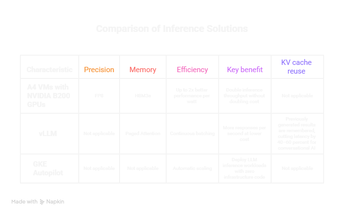 This is where Google Cloud has quietly taken the lead. By combining A4 VMs powered by NVIDIA B200 GPUs, Virtual Large Language Model (vLLM), and Google Kubernetes Engine (GKE) Autopilot, it’s made large-scale AI inference both accessible and economical.